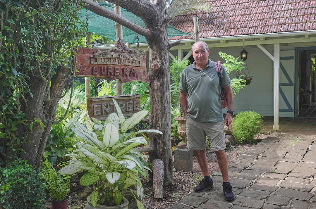 Nous prenons l’autoroute à VACOAS pour atteindre le petite ville de MOKA, la cité des Technologies. Elle se trouve au pied du mont ORY, mont qui surplombe PORT LOUIS. A l’entrée de MOKA et juste avant un petit pont sur la gauche une toute petite route nous mène à le maison EUREKA, ainsi nommée par un , arrière arrière grand père du Prix Nobel de littérature , LECLESIO. Il avait racheté cette maison au Grand bâtonnier de MAURICE, de l’époque .Jusqu’en 1980 où il a fallu la vendre pour partager entre les nombreux héritiers. Elle appartient actuellement à Jacques de Maroussem, un mauricien, artiste local et homme d’affaires. Il appartient au carré blanc, descendants des Français et Anglais ayant conquis l’ile.
